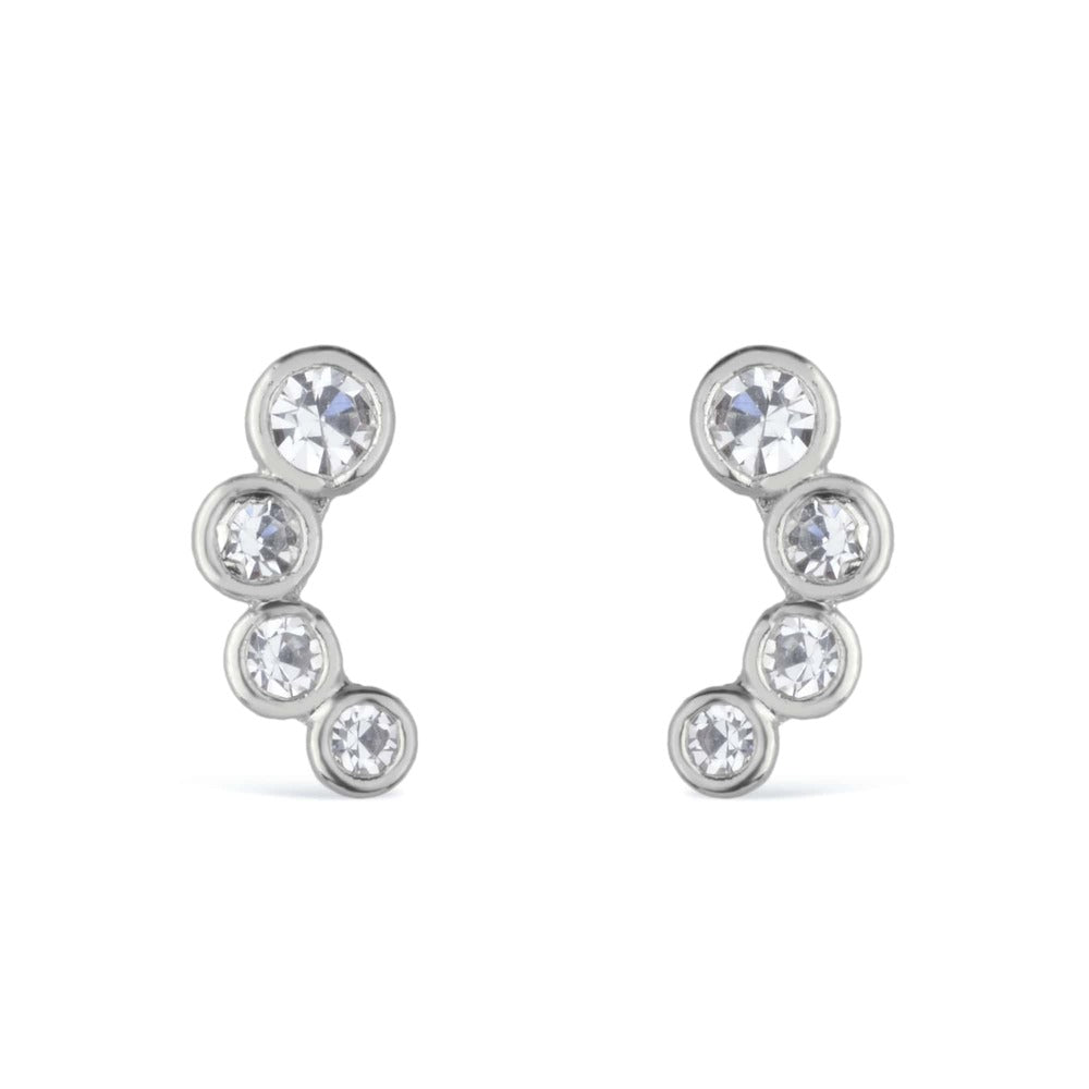 Brinco Prateado com 4 Pontos de Luz em Zircônia
